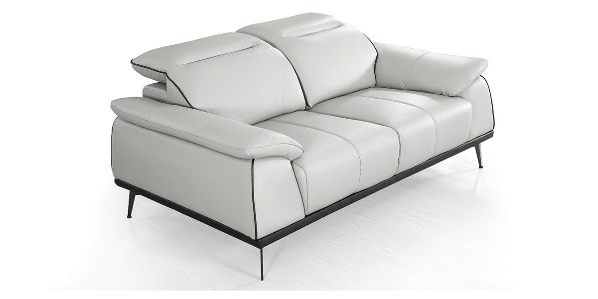 Notre élégant canapé 2 places en cuir ELLIE vous fera craquer par ses formes et ses finitions impeccables. Son cuir gris apporte indiscutablement un effet travaillé et chic dans votre salon, alors que ses pieds en acier inoxydable apporte un effet froid à l'intérieur.
