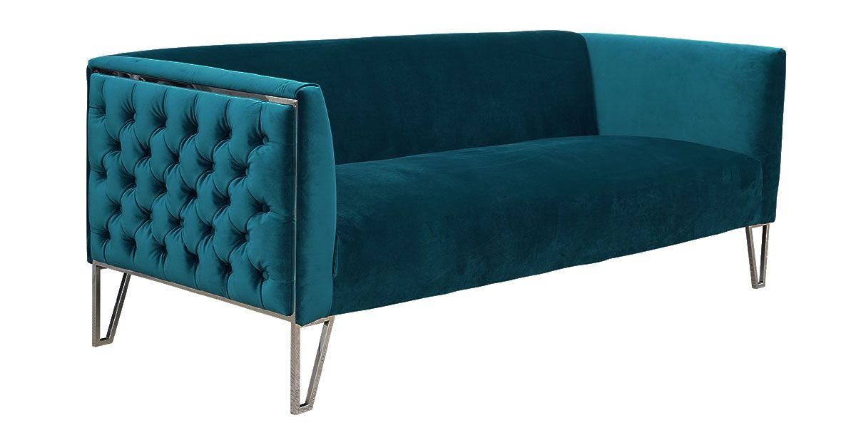 Le canapé 3 places en velours bleu/vert DONOVAN est un classique revisité. Son velours doux et son coloris tendance le rendent actuel et unique. Il sera l'adepte des personnes qui osent et qui aiment l'originalité et le confort. Aussi moderne que rétro laissez libre court à votre imagination pour l’assortiment de votre salon. Il aura sa place de choix dans votre intérieur.