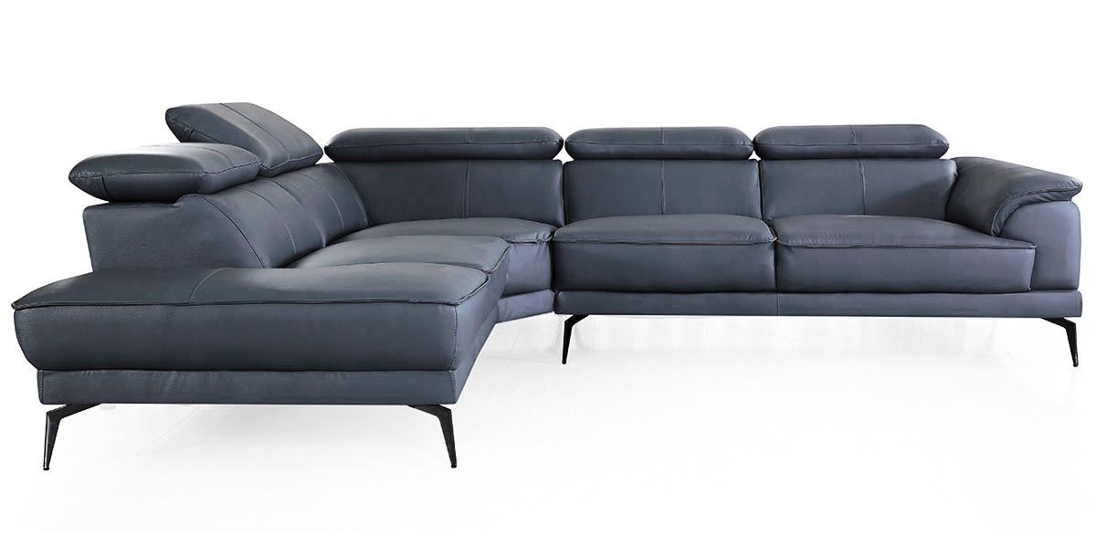 Canapé d'angle gauche en cuir ELEA - Bleu gris