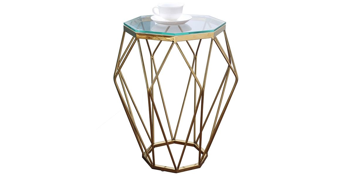 MatériauxPiétement : Acier inoxydable doré – Plateau : Verre transparent